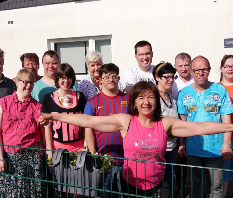 Unter der Leitung von Sylvia Baduks, die mit ihrer liebevollen, einfühlsamen Art und ihrem Engagement eine Gruppe für Menschen mit Beeinträchtigungen geformt hat, die in dieser Form einzigartig im weiteren Umkreis ist! Die Teilnehmer, bestehend aus allen Altersstufen, haben in dieser Stunde Freunde und Riesenspaß, was sie dann auch jubelnd zum Ausdruck bringen. Nach anfänglicher Scheu und Schüchternheit, zeigen sie jetzt Lockerheit und Ausgelassenheit. Bei allen Teilnehmern ist eine positive Entwicklung zu erkennen!